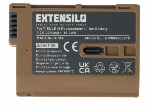 Батарейка»EXTENSILO»Extensilo A/k Nikon EN-EL15 2250 mAh w.USB-C for D600 / D7000 / D800 / Z6 / Z7 / V1»(new)