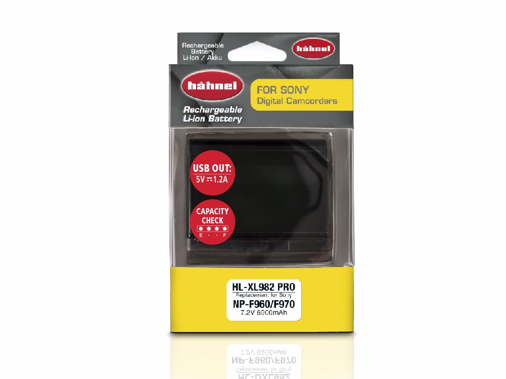 Hähnel HL-XL982 Pro is a replacement battery for the Sony NP-F960 / F970, with extra high capacity (6900 mAh) for extended run time. The battery has an integrated USB port type A (5V, 1.2A) and can be used as an external power source for USB devices like phones, tablets and cameras. Also works great for LED video lights with USB connector.