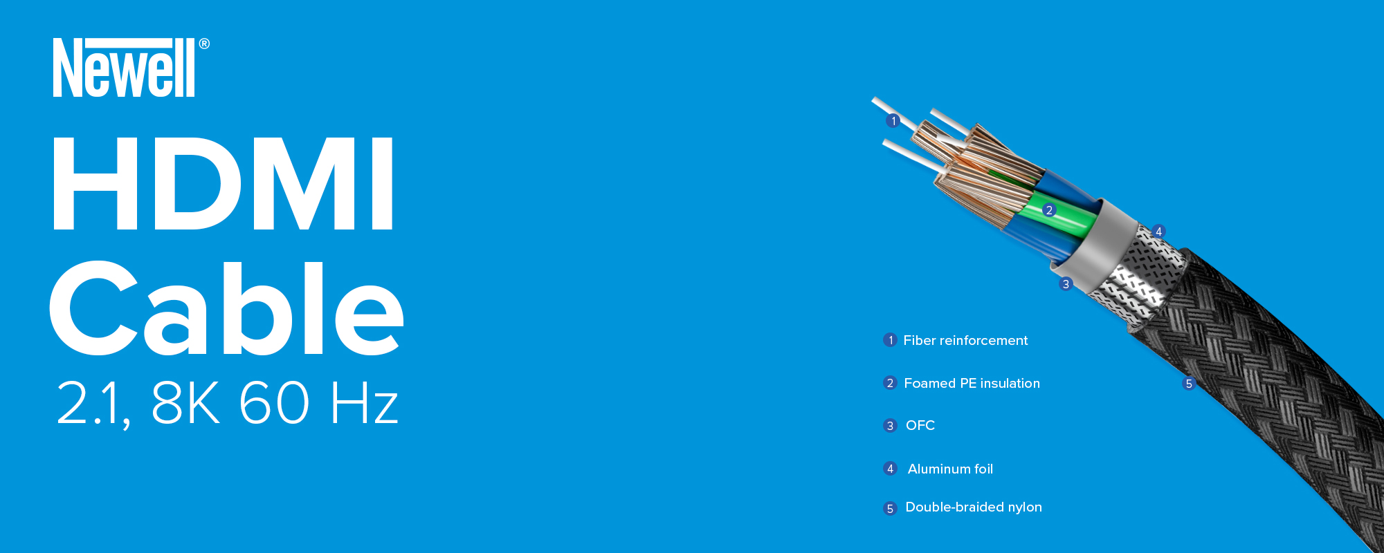 HDMI cable – HDMI 2.1 Newell is the ideal choice for those who want to enjoy the best audio and video quality while playing games, working in front of a monitor or watching movies and TV series. You will connect it to gaming consoles, Blu-ray and DVD players, Smart TV set-top boxes, projectors, TVs, monitors, computers, laptops and home theater systems, among others. The cable supports modern HDMI 2.1 technology, so it supports higher resolutions and refresh rates (8K / 60 Hz and 4K / 120 Hz). It also provides impressive data transfer (up to 48 Gbps). Gold-plated contacts and a core made of tin-plated copper are a guarantee of stable signal transmission.