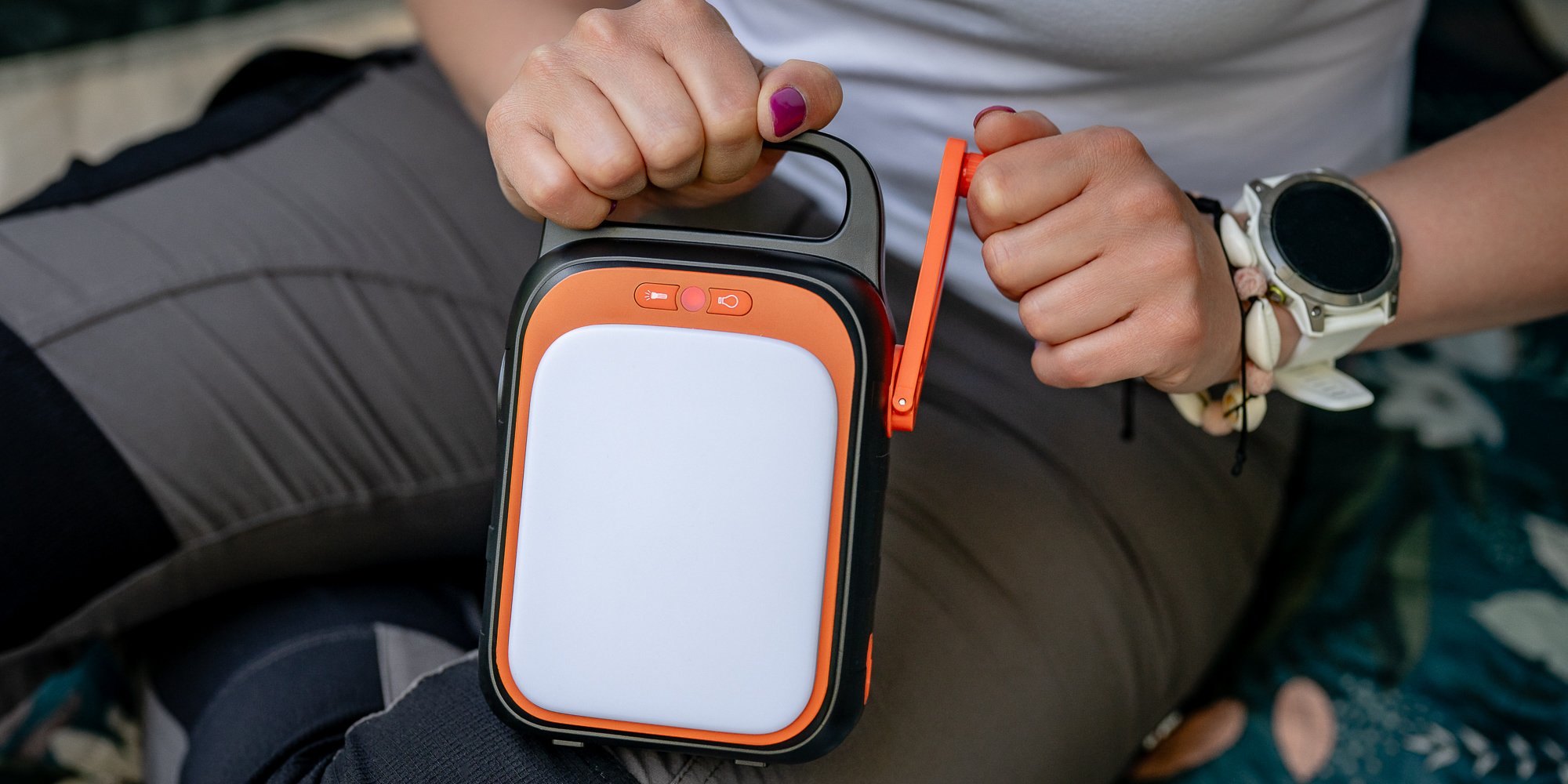On the housing of the Newell Asvala Crank 22500 mAh PD 18 W Power Station you will find a large LED panel, which will prove to be a great source of light for camping or tenting, among other things. However, that’s not all! The device is also equipped with a powerful flashlight that will light your way during night travels. A small button will allow you to quickly and conveniently turn the light on or off, set the desired brightness level, and use the “SOS” mode in emergency situations.
