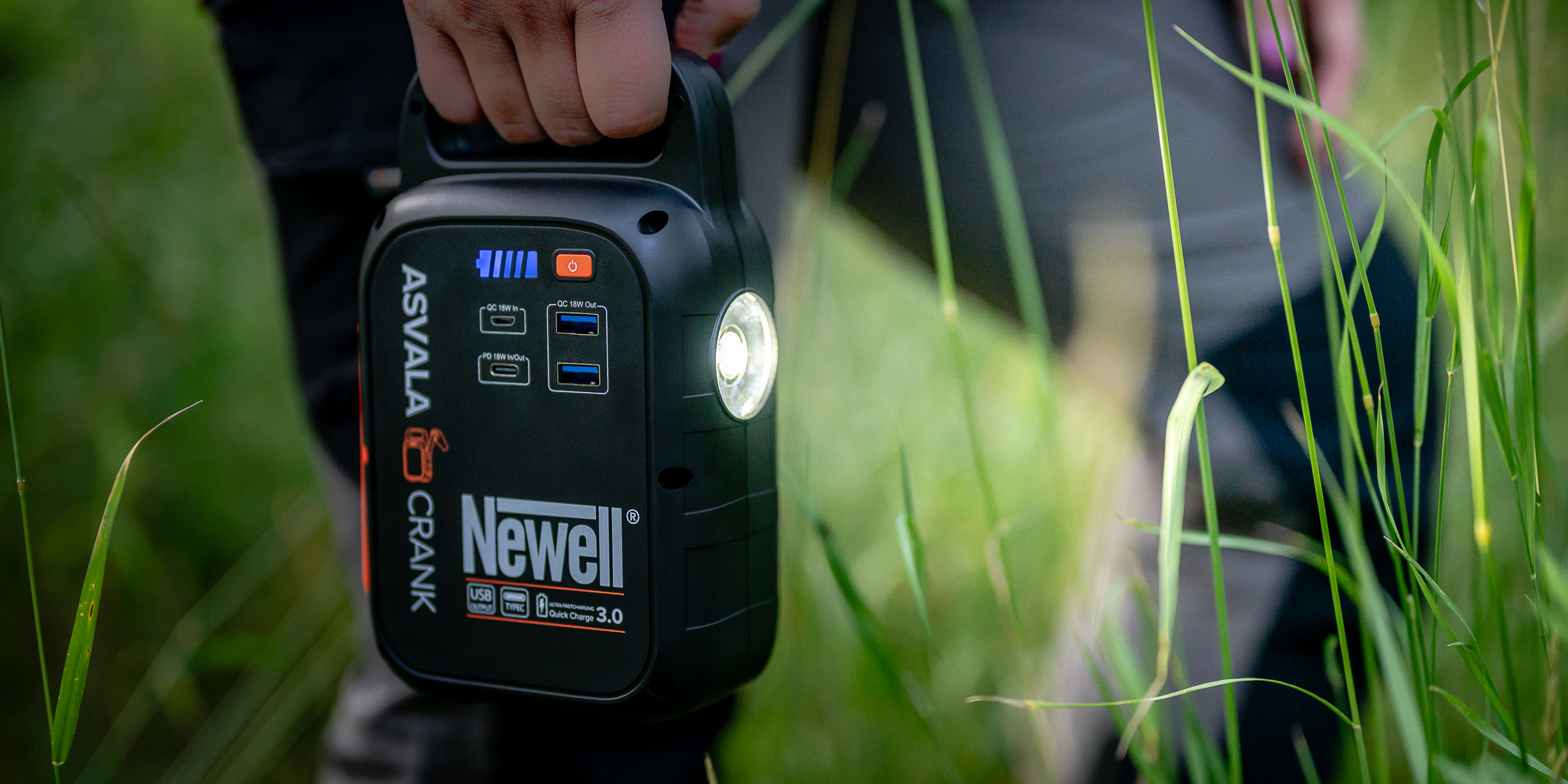 Newell Asvala Crank is a 22500 mAh power station that stands out for its compact size and above-average functionality. This unique power bank is an ideal choice for outdoor enthusiasts and people who spend a lot of time outdoors. Its hallmark is the unique manual charging lever. By rotating it, you can generate electricity yourself in an emergency situation. And when you have access to traditional power sources, you can charge the station from USB-C or micro USB ports. The Newell Asvala Crank will provide convenient charging for smartphones, tablets, laptops, drones and many other devices that you can connect to USB-A (QC 3.0) or USB-C (PD 3.0) ports. A built-in flashlight with SOS mode and LED panel make the Asvala Crank an essential tool for any adventure.