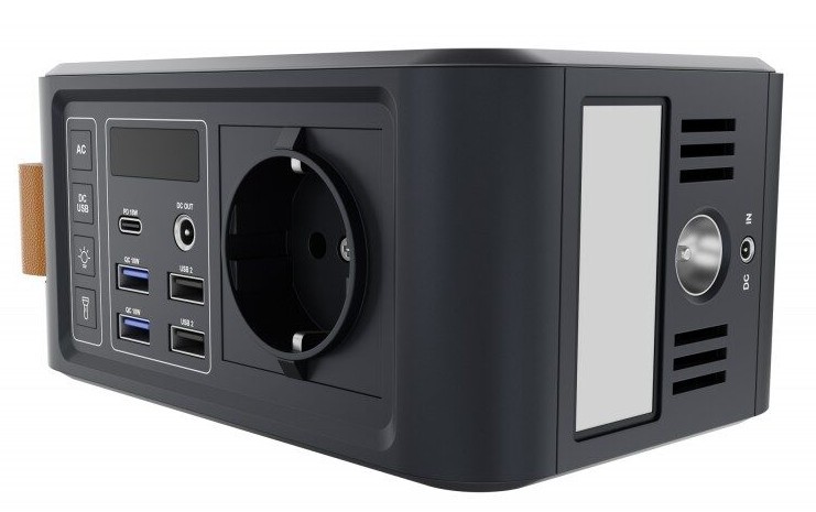 On the casing of the Newell Asvala Mini 220 V 24000 mAh PD 18 W charging station you will find a large LED panel, which will prove to be an excellent source of light for camping or tenting, among other things. However, that’s not all! The device is also equipped with a powerful flashlight that will light your way during night travels. A small button will allow you to quickly and conveniently turn the light on or off, set the desired brightness level, and use the “SOS” mode in emergency situations.