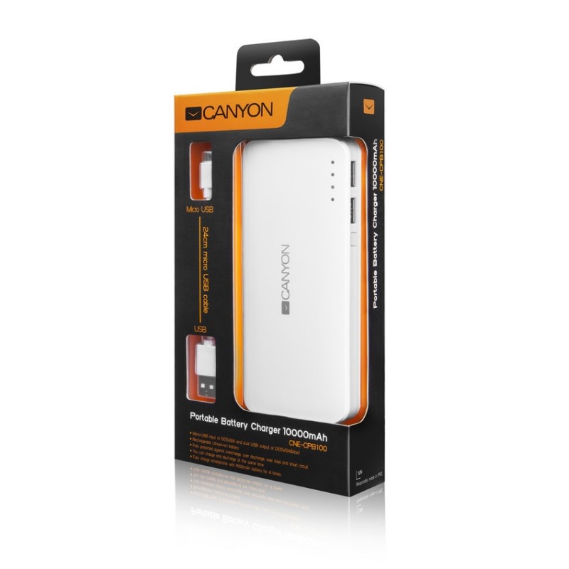 Внешний аккумулятор»CANYON»Battery charger for portable device 10000 mAh (White)»(new)