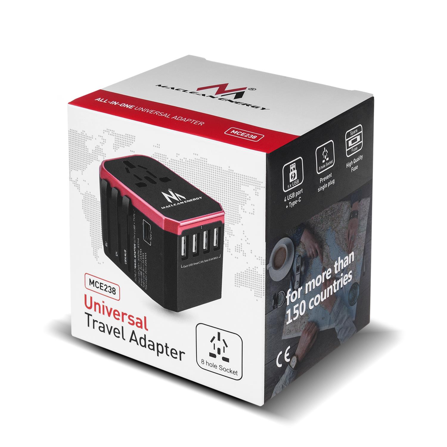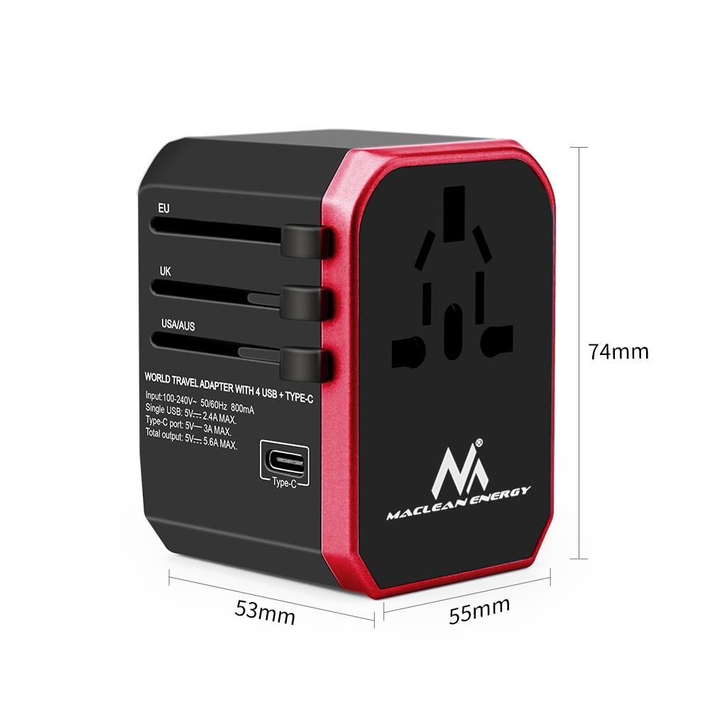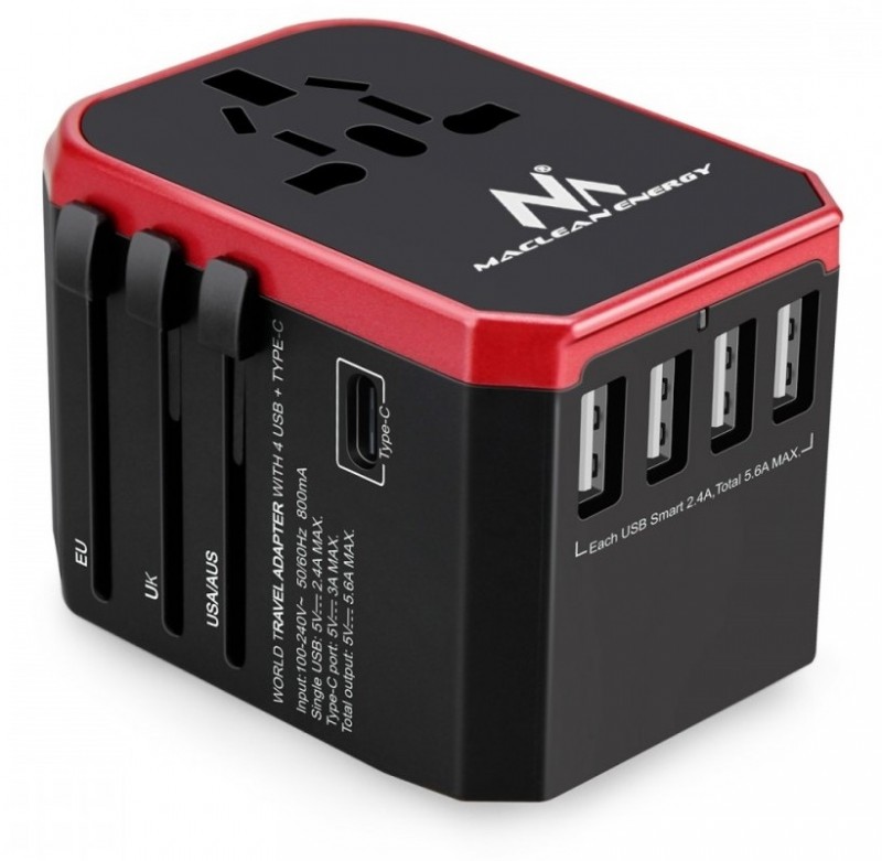 Input: 100-240V ~ 50 / 60Hz 800mAOutput: 5V - 5.6A MAXUSB 5V - 2.4A MAXUSB-C 5V-3A8A + backup fuseNo groundingPower: 880W - 110V / 1840W - 230V
