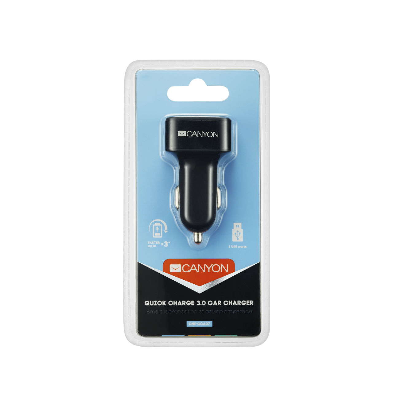 Зарядное устройство»CANYON»CANYON Mini 3 USB car adapter CNE-CCA07B 2 USB & Quick Charge 3.0»(new)