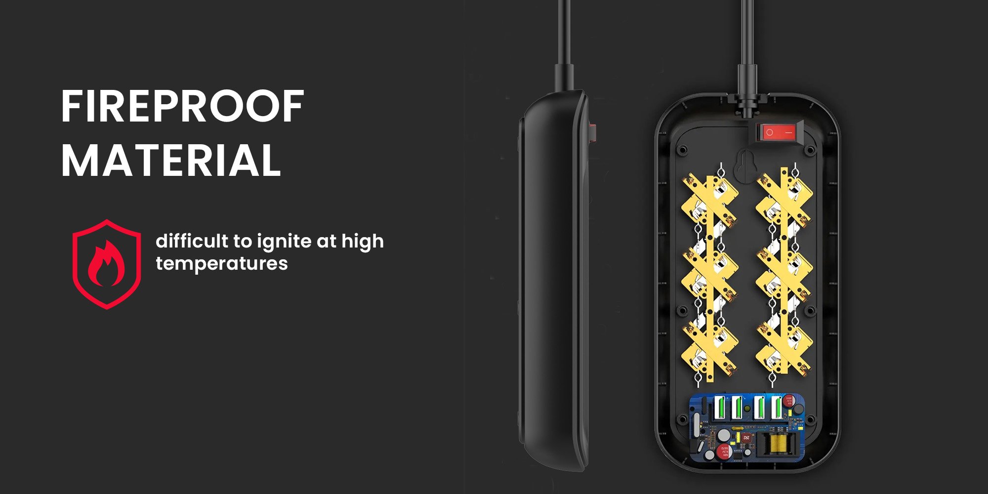 The SE6403 extension cord guarantees the safety of the equipment connected to it, but also protects you and your home. The switch used in the power strip is IPX-rated, so you don’t have to worry about electrocution if you happen to switch it on with a wet hand. The housing of the device has been made of fire-resistant PC material that can withstand temperatures of up to 700°C. This will protect your possessions from the unpleasant consequences of a possible short circuit.