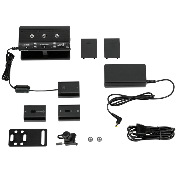 This battery adapter can charge four NP-FZ100 Z-series batteries and supports longer life.