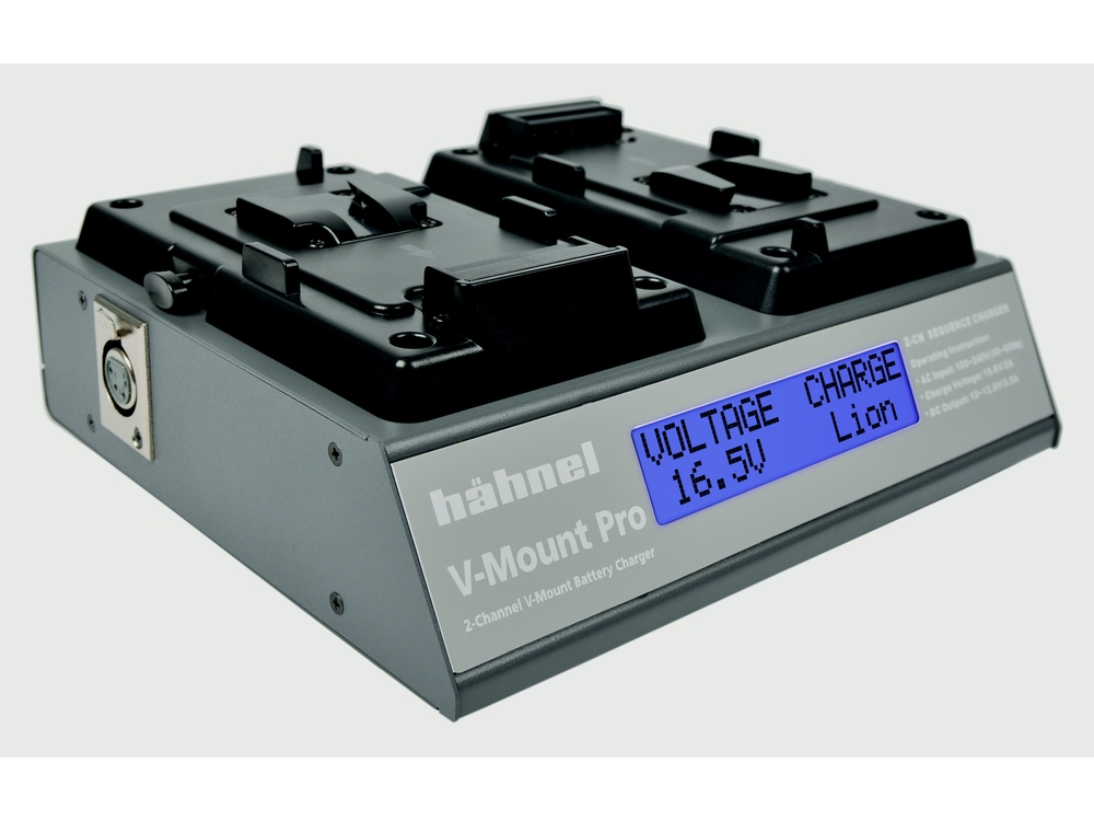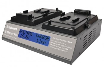 The V-Mount broadcast charger by hähnel features a unique charging system and is designed to work with both Li-Ion and Ni-MH batteries, making it ideal for the professional broadcast industry.