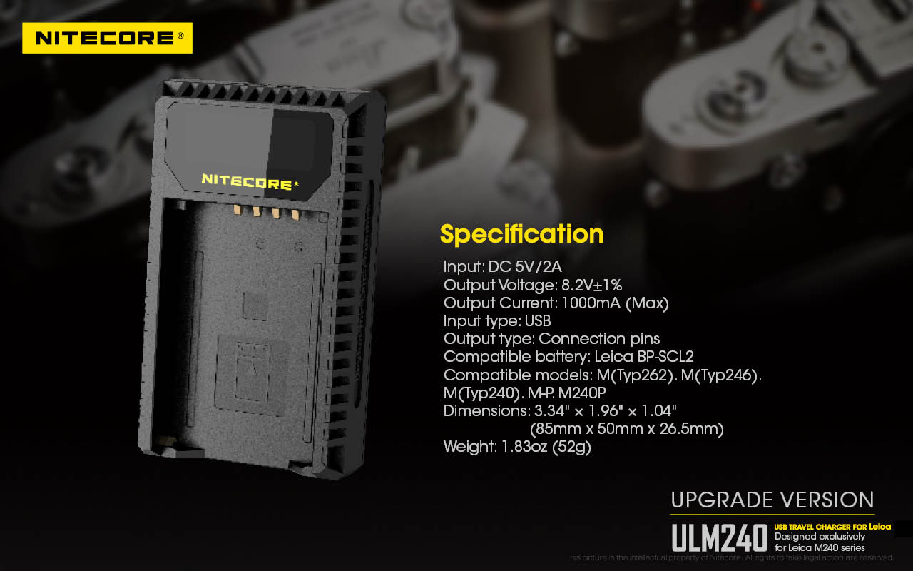 - Kross: Nitecore ULM240 for BP-SCL2 / Typ-240 / Leica M / Typ-246 / Typ-262
