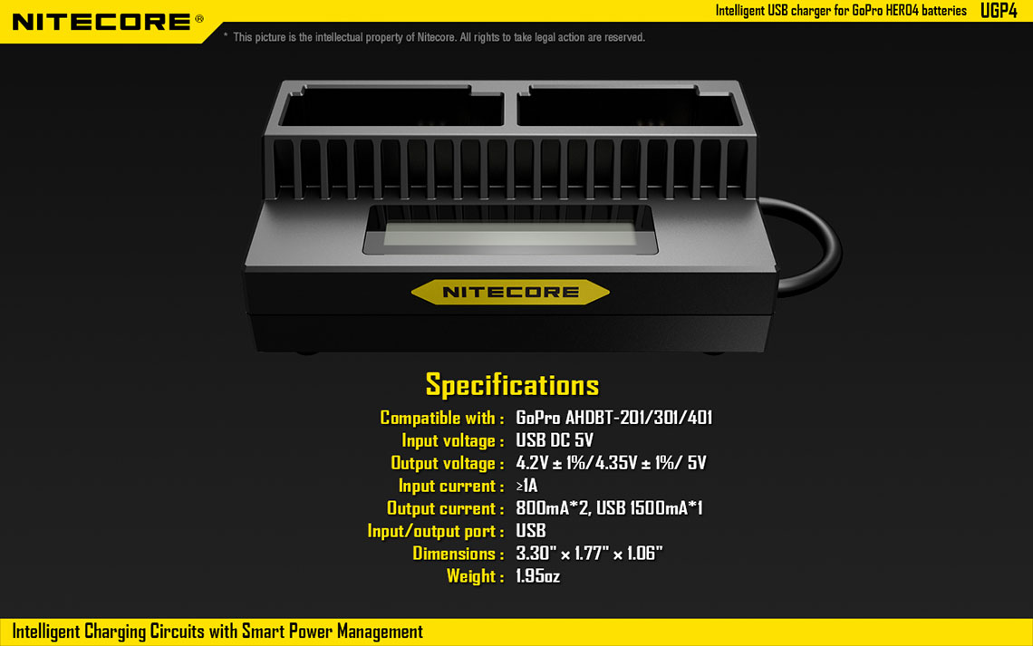Зарядное устройство»Nitecore»Nitecore UGP4 for Gopro Hero4 & hero3 / AHDBT-401 / 301 / 201»(new)