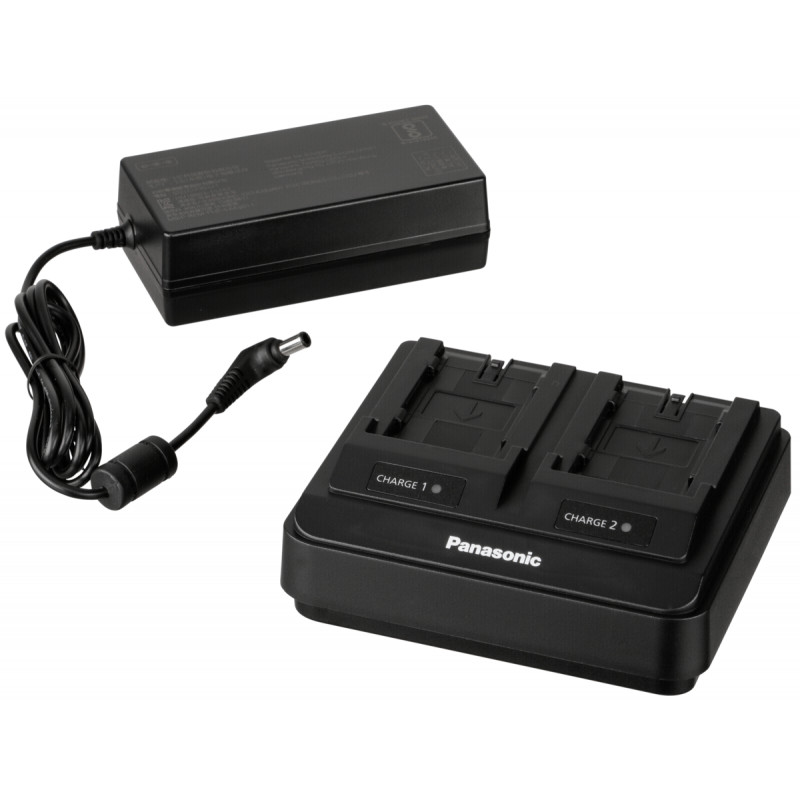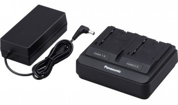 The Panasonic AG-BRD50 is a 12V dual battery charger for the Panasonic AG-VBR118G, AG-VBR89G, and AG-VBR59 batteries, which are for the DVX200 camcorder. It also supports the VW-VBD58, VW-VBD55, CGA-D54, and VW-VBD29 batteries, but is not capable of quick charging with these models.