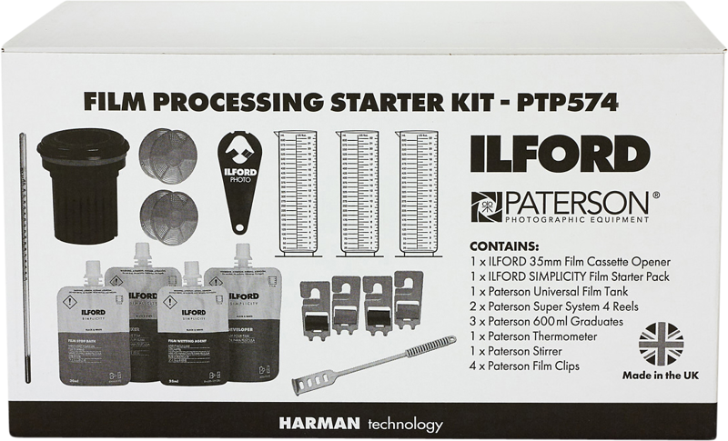 Contains ILFORD Simplicity Film Processing Starter Pack