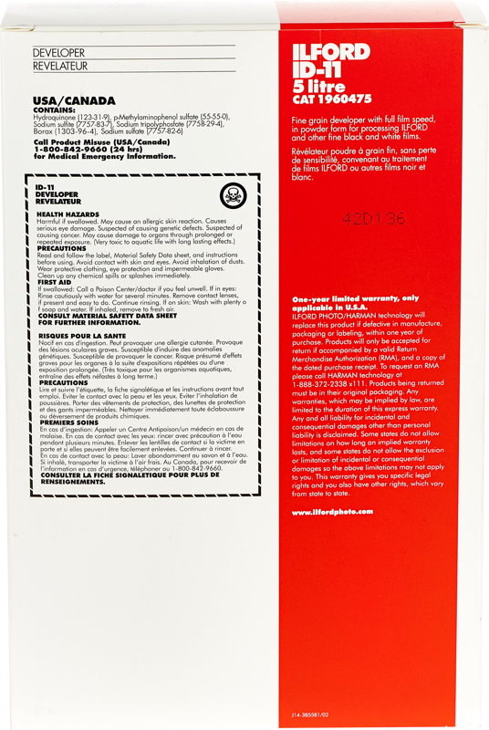 - Вес ( гр. ): Ilford Photo Ilford Developer ID-11 5L