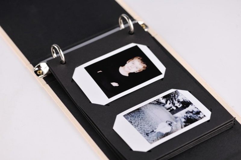 Instax Mini album for 20 photos of your sweet memories. Cute and elegant design, 2 ring photo album. Aviable in light brown colour with black paper sheets.