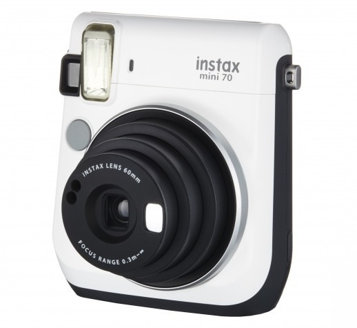 Designed for the selfie enthusiast, the moon white instax mini 70 from Fujifilm is a sleek camera characterized by a range of features for self-portraiture and sharing your instant credit card-sized prints. The camera's design incorporates a retractable two-element Fujinon 60mm f/12.7 lens that permits focusing as closely as 11.8" in macro mode. The optical real image viewfinder has a 0.37x magnification along with a target spot to aid with composition, and the front of the lens incorporates a small mirror to also benefit more accurate selfie compositions.