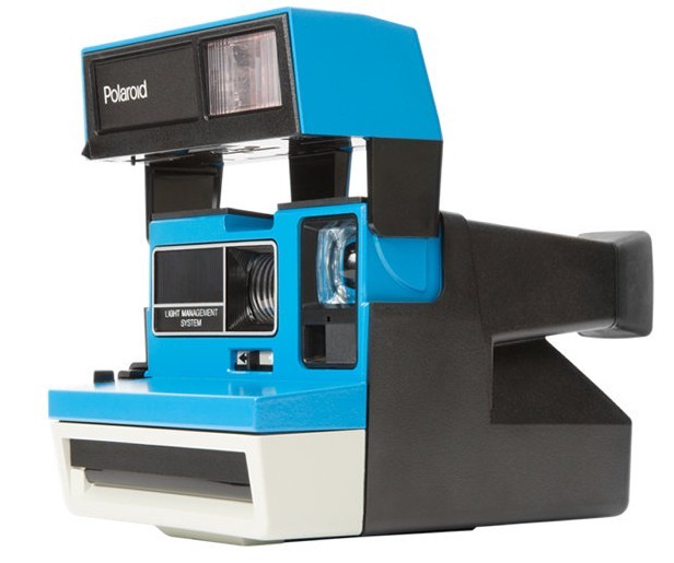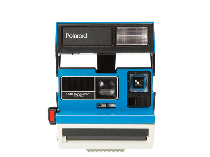 An 80s style Polaroid 600-type camera with a boxy square body in blue colour (Limited Edition). It has been carefully refurbished and fitted with a new Impossible frog tongue to shield photos as they exit the camera. Works with Impossible 600-type film (sold separately). This camera is perfect for anyone who is just getting started making original instant photos. It has an easy to use point and shoot style, with a built-in automatic flash and fixed-focus lens. It also features simple controls for adjusting exposure levels, so you can get a brighter or darker image with ease.