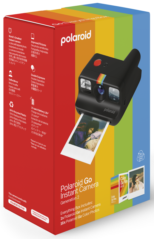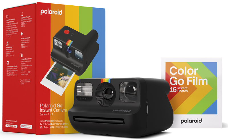 Tā ir patiešām maza (mazākā kamera pasaulē), taču tai ir liels radošais potenciāls, jo ir pašportreta spogulis, pašspiediena uzņemšanas funkcija, dubultā ekspozīcija, un to var kombinēt ar saviem pavisam mazajiem krāsu filtriem. Tas viss klasiskā dizainā, un tagad tas ir izgatavots, izmantojot 30 % otrreizēji pārstrādātu materiālu. Komplektā ietilpst Polaroid Color Go filmu dubultpakete 16 krāsainām momentfotogrāfijām ar baltiem rāmjiem.