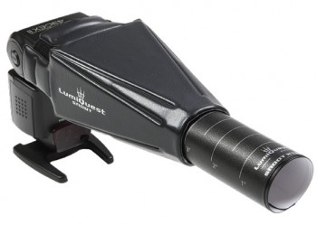 Description: The Snoot XTR isolates the light to an area of approximately 10°. By inserting the telescopic extender, the photographer can consistently isolate the light to an area of 5° or less. Automatic exposure may be affected, as illuminated area is limited. Bracketing and/or testing is recommended.