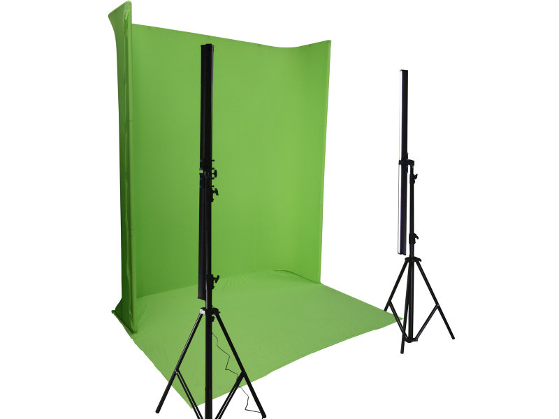 Package with green screen background, 1.8m high and 2.2m wide, plus U-shaped aluminum frame to support the background.