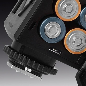 Depending on the camera, the mecablitz M400 with master and slave mode also offers wireless TTL flash. The M400 comes with an adjustable LED video light for illuminating video recordings or checking shadows.