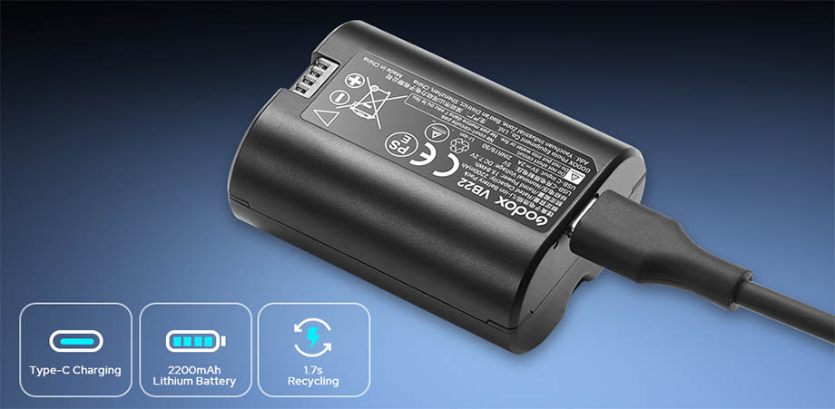 A rechargeable 7.2 V/2200 mAh battery delivers up to 650 flashes at full power and recharges in just 1.7 seconds. USB-C charging allows you to recharge between sessions, so you can keep shooting all day long.
