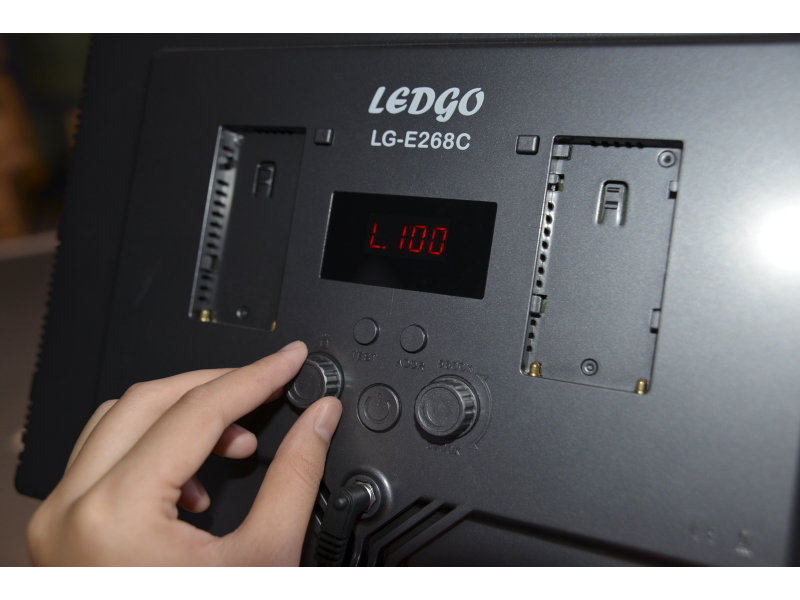 Ledgo LG-E268C -videovalon power source can be used for two Sony NP-F750 / 970 batteries or the included AC adapter.