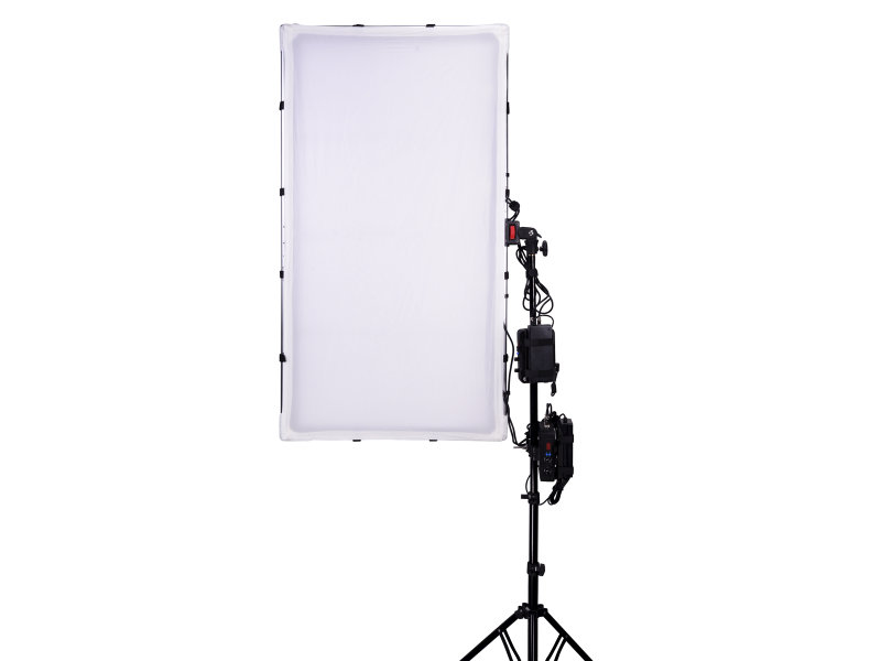 Each LED-panel delivers a flicker-free light with a maximum output of 3173 lumen. The LEDs have a high CRI value (RA> 95), which provides a natural color rendering. Brightness is adjustable and even the color temperature can be controlled between 3200K and 5600K. Both functions are operated with a wired control box that show settings on a small display.