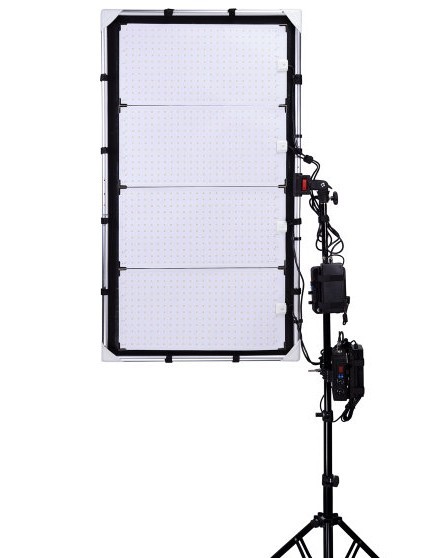 The Ledgo LG-V58C4K1 Versatile Kit consists of four thin, flexible and waterproof LED panels, each one with a 41 x 23 cm surface. They can be used independently or attached to a supplied aluminum tube frame that forms an almost square rectangular light source, 80 x 45 cm. The frame is equipped with a tiltable foot for use on a light stand. A diffuser cloth (included) can also be placed in front of the LED panels to soften the light.