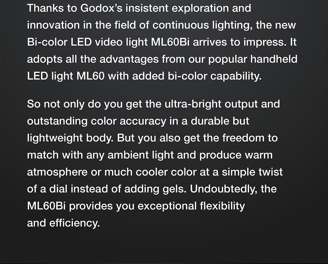 ЛЭД осветитель»GODOX»Godox ML60BI LED Light Bi-Color/ BI»(new)