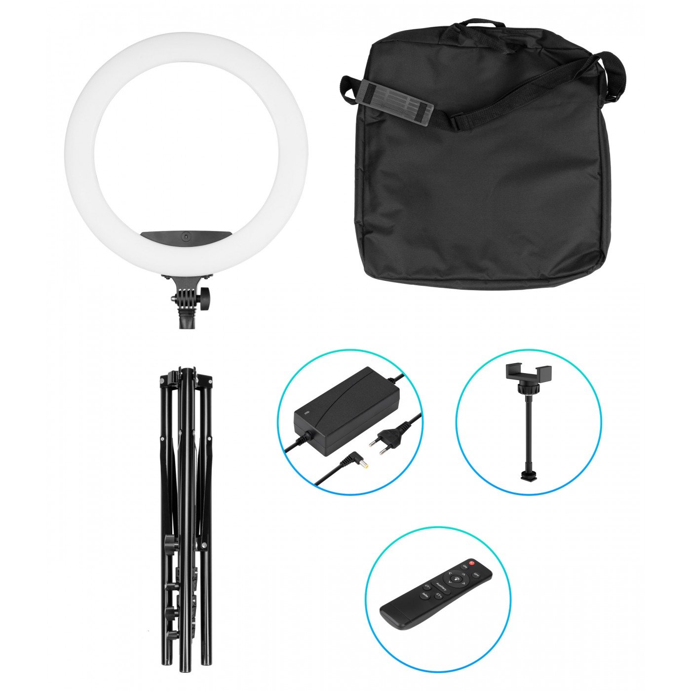 Newell RL-18A II LED Ring Light is a versatile device that will find use in portrait, product and macro photography. It will also work well for vloggers and people creating videos for Twitch, TikTok or YouTube, complementing your home studio. Newell RL-18A II is perfect for make-up and make-up artists, providing even facial lighting. Ergonomic power and color temperature adjustment will allow you to precisely match the lamp parameters to your current needs. The remote control, tripod and smartphone holder will allow you to quickly and conveniently change frames, manage light and create even better photos and videos!