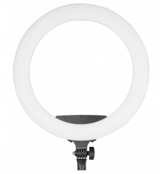 Thanks to its specific design, the ring lamp provides an even distribution of light. The construction of the lamp allows it to be mounted, using a built-in bracket, on a lighting tripod. The design of the adapter also allows you to adjust the angle of the panel plane.