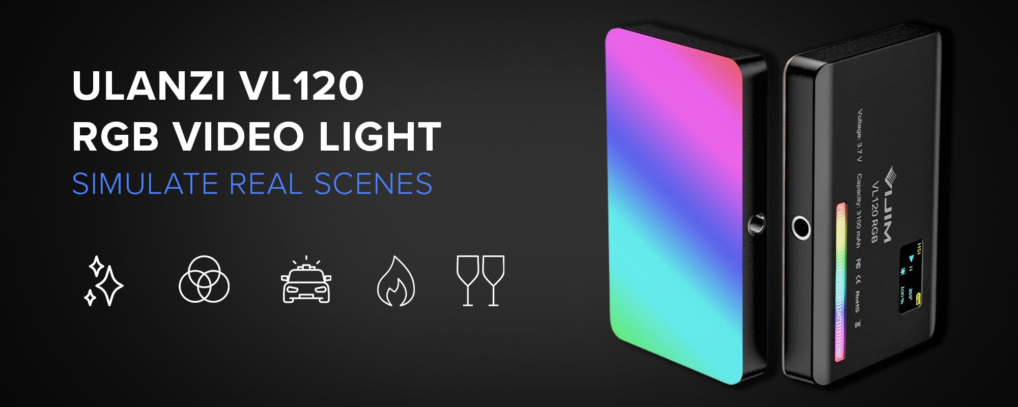 model: Ulanzi VL120 LED lamp – RGB, WB (2500 K – 9000 K)