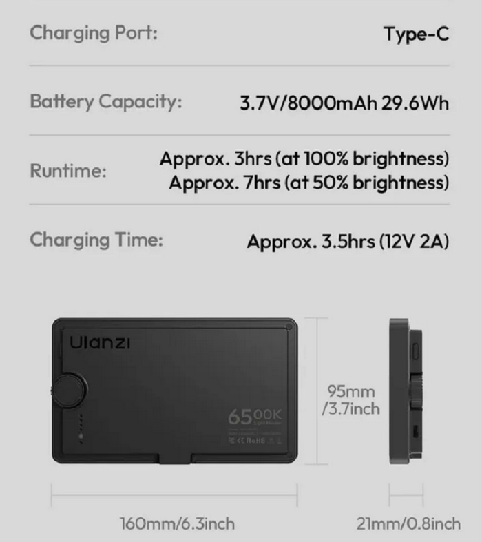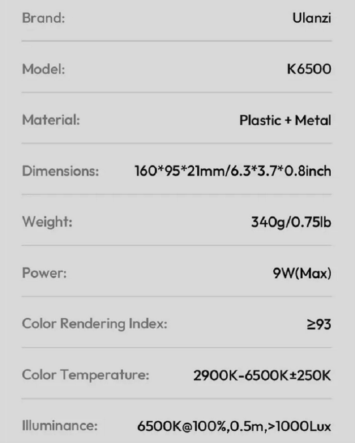 Continuous Output Lighting:Enjoy uninterrupted lighting with Ulanzi K6500's continuous output, ideal for extended shoots.