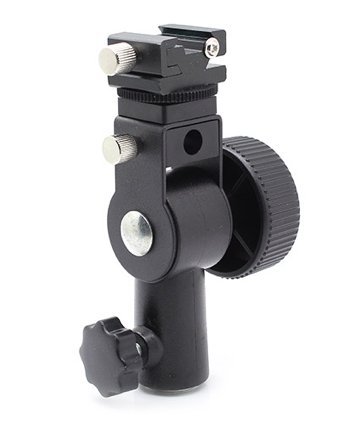 The  Godox Speedlite D holder  you can attach a location flash on a tripod, including an umbrella. This holder is suitable for flash units with a hot shoe mount, except for those from Sony Minolta, and in connection with the different hot shoe. Also, the holder fits on tripods with a 1/4 "or 3/8" thread. The Godox D Speedlite Holder is lightweight and compact and easy to carry.