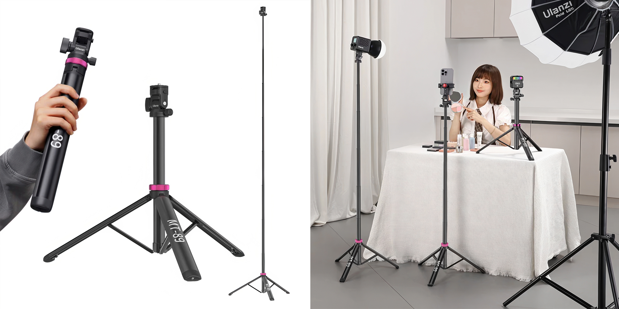 Nothing is more frustrating than a wobbly tripod that makes working with an LED lamp or camera more difficult instead of helping. The Ulanzi MT-89 is made of a durable aluminium alloy, which translates into a stable construction and low weight (just over half a kilogram). The wide leg spacing and low centre of gravity guarantee a secure footing, even in difficult conditions. With this tripod, you can focus on the creative aspects of framing, knowing that your equipment is safe.