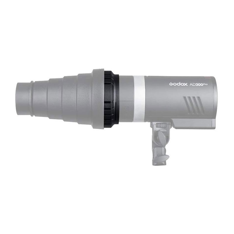 The AD-AS Adapter for AD300pro from Godox is a necessary accessory to mount the SN04 Snoot on the AD300pro.