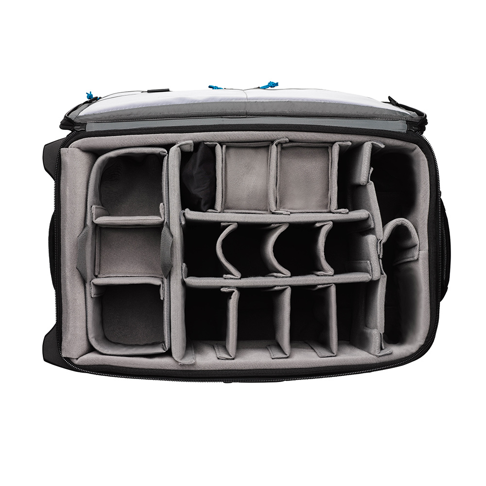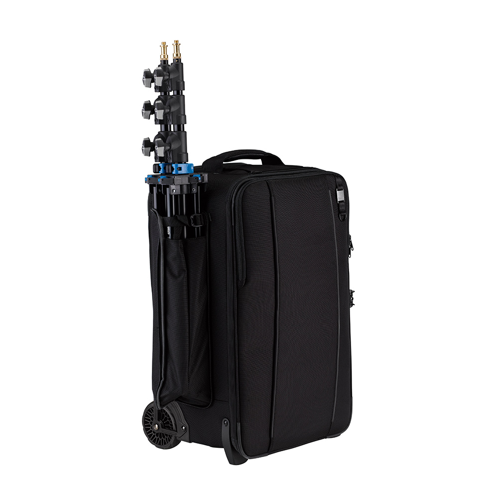 Although it does not comply with hand luggage regulations, it offers enough space so that a 70-200 mm 2.8 lens can be transported vertically and mounted. Alternatively, a camera and a portable lighting system can be stowed next to each other. The Roller 24 contains Tenba's exclusive removable lens module, a mobile battery compartment on the back, a tripod attachment option with quick access and a steel security cable, integrated zippers, leather-trimmed handles and shock-absorbing wheels. For everyday transportation away from the airport, this is the best rolling suitcase we've ever made.