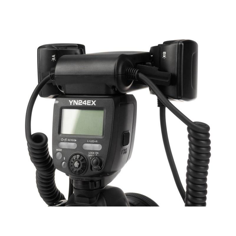 Yongnuo YN24EX is a specialist lamp designed for macro photography, equipped with two moving heads that emit strobe light and continuous.
