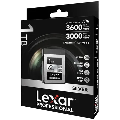 Capture more high-quality images and 4K The Lexar® Professional CFexpress™ Type B Card Silver Series is designed to leverage the capabilities of next-level cinema cameras and high-resolution DSLRs, allowing you to capture high-quality images and 4K. It also features high-speed performance of up to 1000MB/s read1, and 600MB/s write.