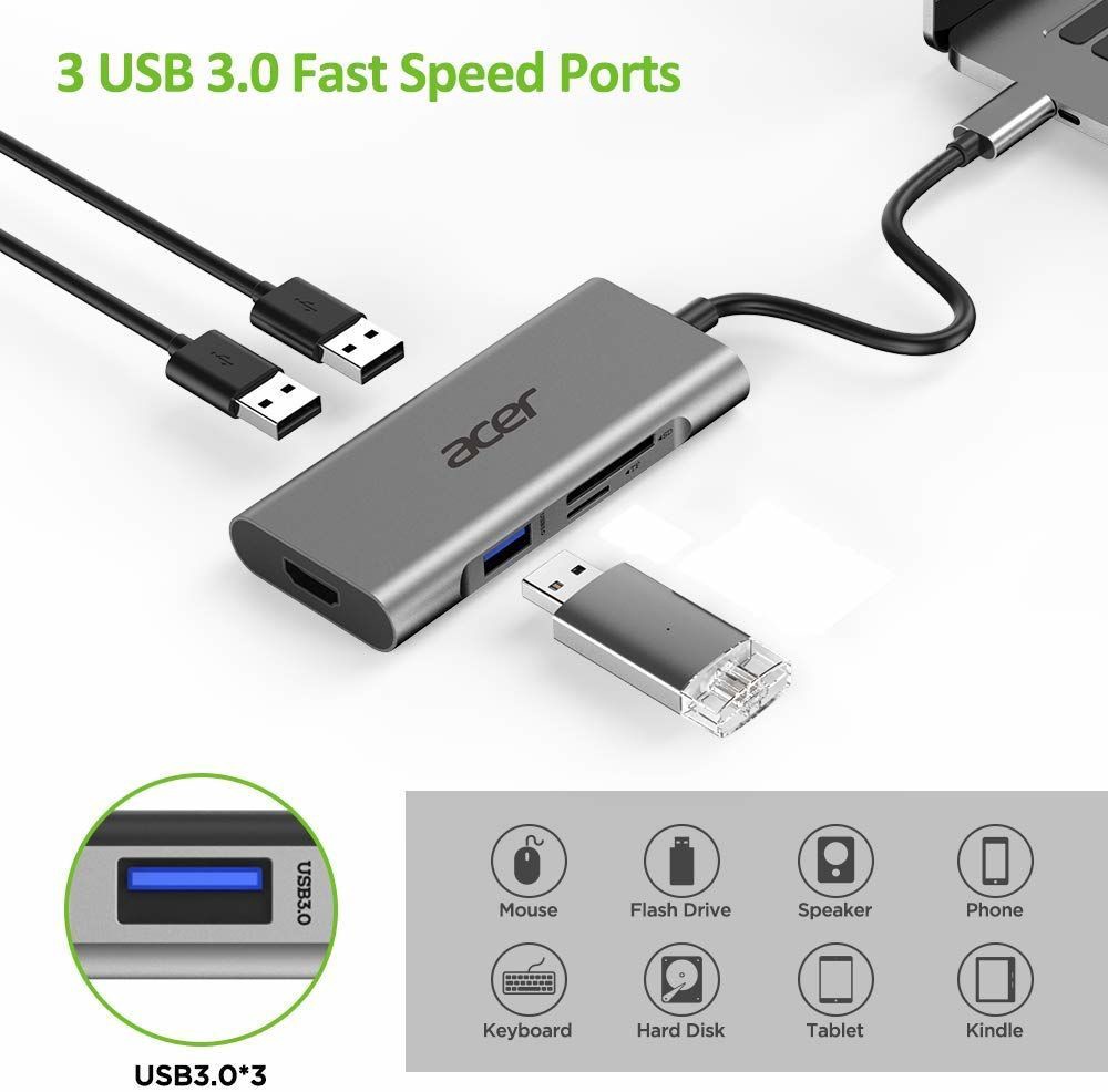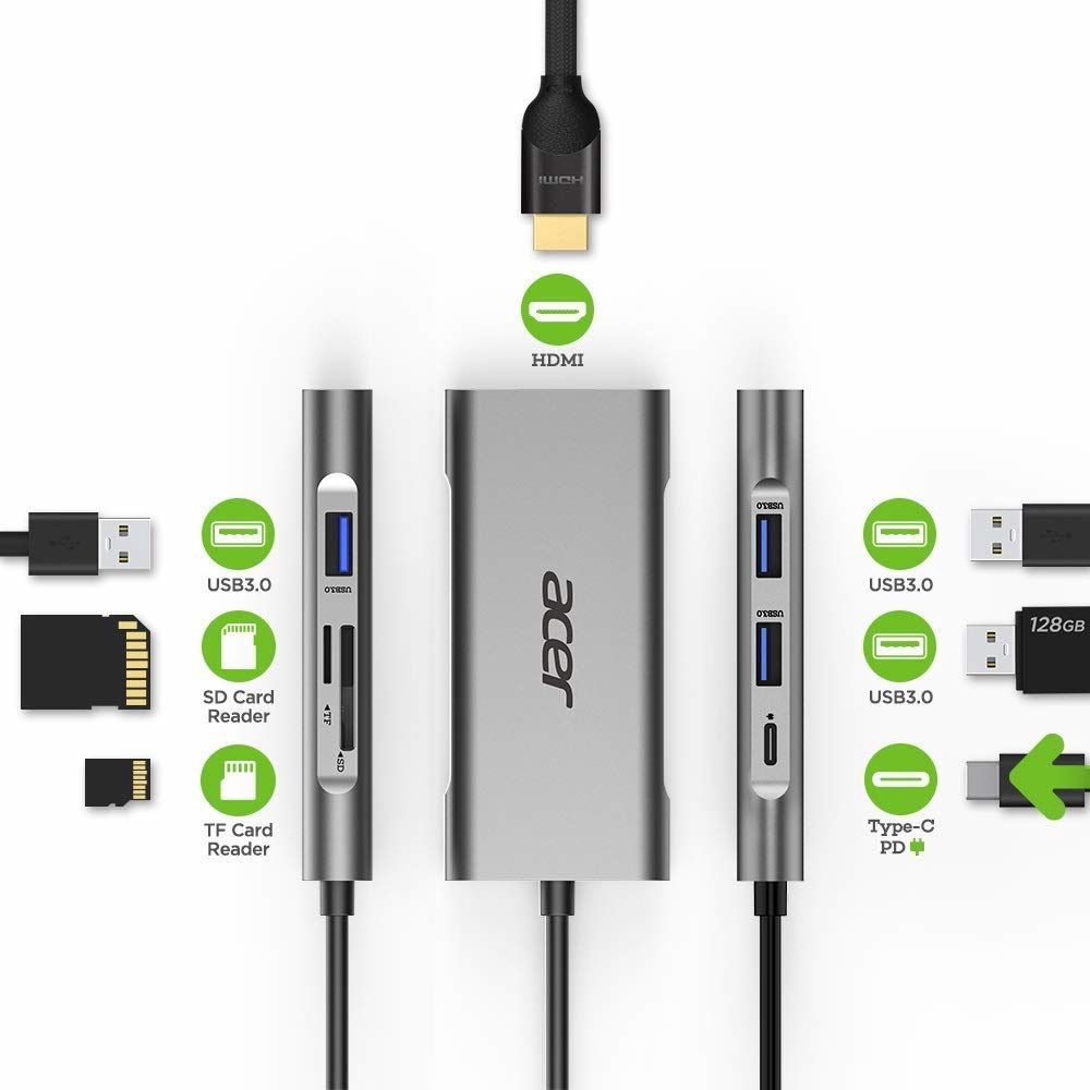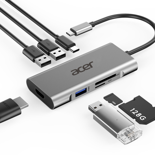 Считыватель карт»ACER»Acer Docking Station 7in1 Type-C dongle 3 x USB 3.0, 1 x HDMI, 1 x Type C PD, 1 x SD Card reader, 1 x TF Card reader»(new)