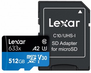 Карта памяти microSD»LEXAR»LEXAR microSD 512GB. 633X MICROSDXC R95/W45 mB/s A2 , C10 , V30 , UHS-I , U3»(new)