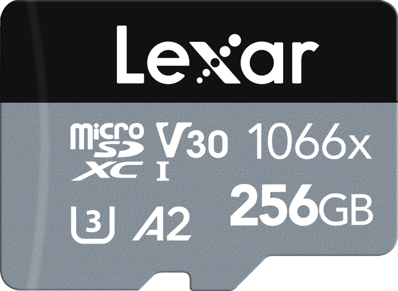 Capture your adventures in 4K UHD Designed for your action cameras, drones, or Android™ smartphone, the Lexar® Professional 1066x microSD™ UHS-I Card SILVER Series lets you quickly capture and transfer high-quality photos, including Full-HD and 4K UHD video with speeds up to 160MB/s read, and up to 120MB/s write. The card is U3, V30 and A2 rated for high-speed performance. This card gives you the speed and storage you need to capture more adventures on the go.