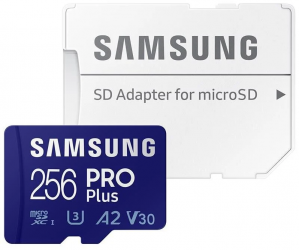 Карта памяти micro SD»SAMSUNG»Samsung PRO PLUS 256 GB , R160/W130 mb/s , V30 , UHS-I , MicroSDXC , U3 , A2 , SD adapter»(new)