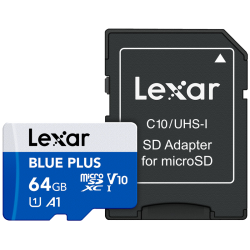 Карта памяти microSD»LEXAR»LEXAR microSDHC Blue Plus UHS-I with SD adapter, up to 100MB/s read C10/A1/U3 (V30) 64GB»(new)