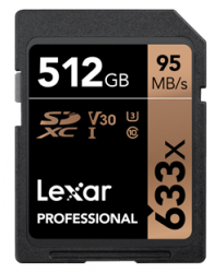Карта памяти SD»LEXAR»LEXAR PROFESSIONAL 512 GB. 633X SDHC/SDXC R95/W45 mb/s , V30 , UHS-I , U3»(new)