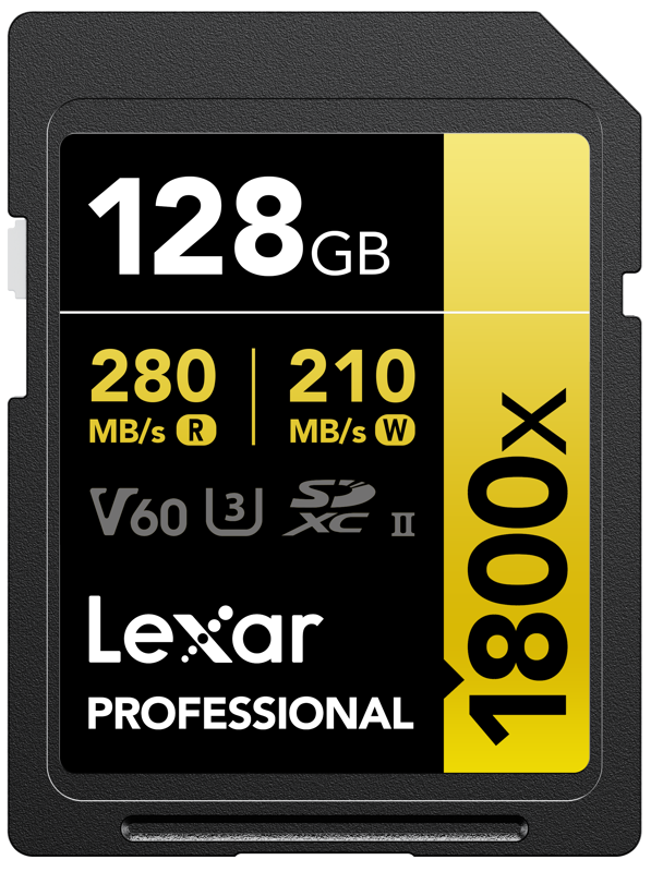 **V60, kas nodrošina vienmērīgu Full-HD un 4K video uzņemšanu. ** Lexar® Professional 1800x SDXC UHS-II karte GOLD Series ar jaunāko UHS-II tehnoloģiju un rakstīšanas ātrumu līdz 210 MB/s ļauj viegli apstrādāt fotogrāfijas sērijveida režīmā. Un, pateicoties V60 un UHS 3. ātruma klasei (U3)2, bez problēmām uzņemiet satriecošus Full-HD un 4K video ar lielu ietilpību līdz 256 GB.