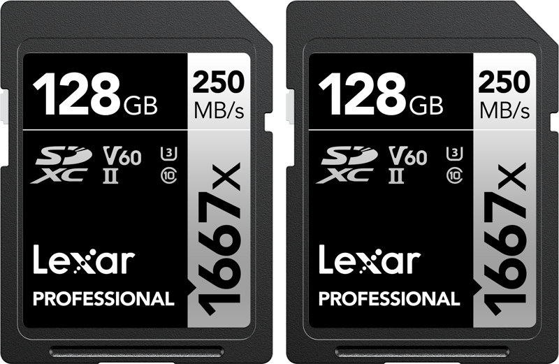 128GB - Class 10, SDXC, UHS-II (U3), V60, 1667x (up to 250 MB/s read, up to 1200 MB/s write)