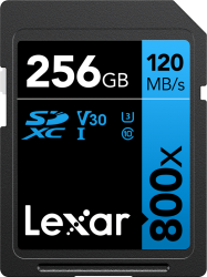 Карта памяти SD»LEXAR»LEXAR PROFESSIONAL 256GB 800X SDXC R120/W45 mb/s , V30 , U3 UHS-I CL 10 , U3 / BLUE Series»(new)