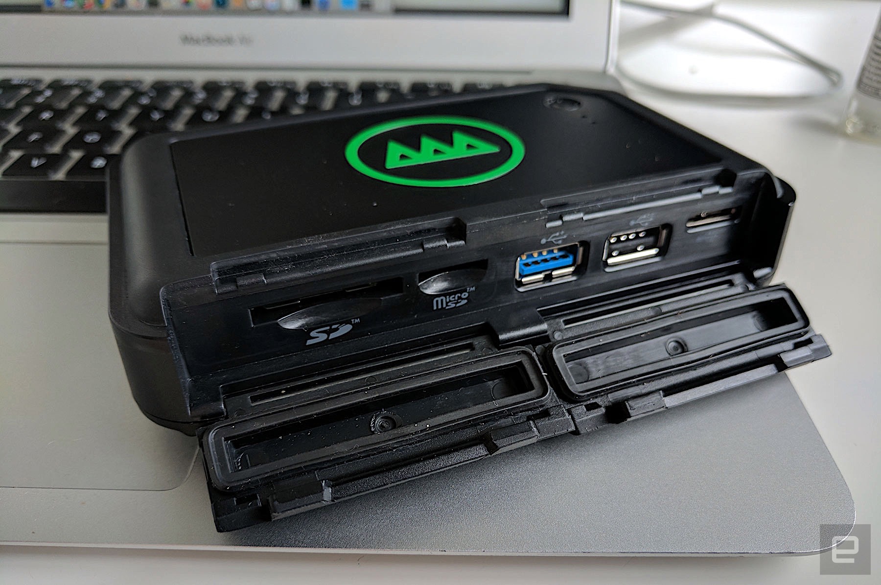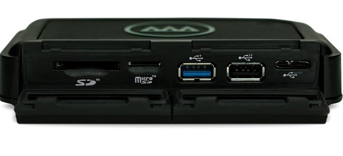 GNARBOX is equipped with one each of the following ports: microSD, SD, USB 3.0 Type-A, and USB 2.0 Type-A, allowing you to connect your camera through a wired connection or use the memory card slots. GNARBOX is SD, SDXC, and SDHC compatible. Use a card reader via USB for CompactFlash (CF) cards.