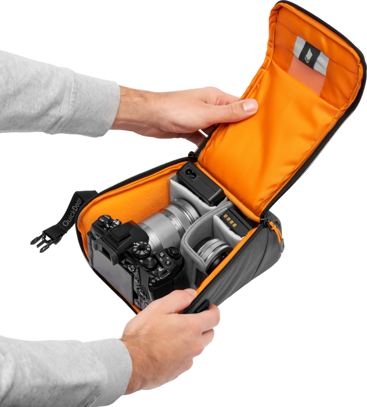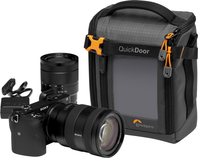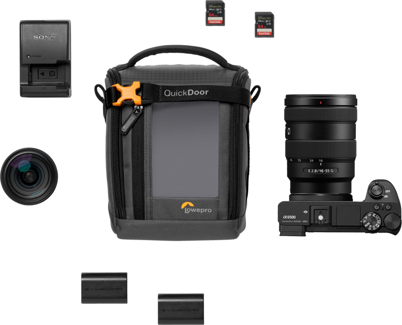 The GearUp Creator Box Medium II camera bag organizer is the perfect portable solution to protect your mirrorless camera kit and accessories. Flexible interior dividers adjust to secure mirrorless cameras like Sony Alpha 6500 with standard zoom lens attached plus additional lens. An interior pocket holds extra memory cards and an exterior pocket stores cords, cables, lens cap and accessories. Carry alone or inside larger bags. New QuickDoor entry system provides fast, easy access to gear while locking strap keeps everything secured right where you want it!